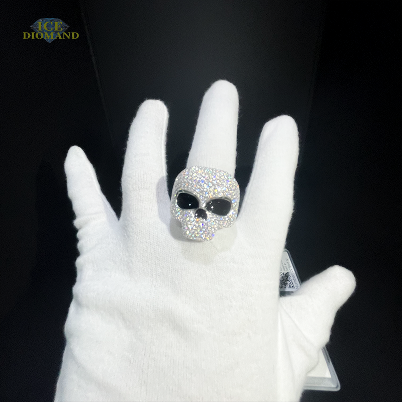 Anello Hip Hop da Uomo in Argento Sterling 925 con Design a Teschio, Gioielli Personalizzati con Diamanti e Moissanite, Supera il Test del Diamante