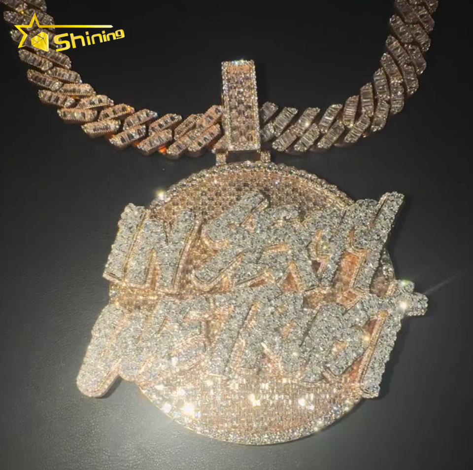 Ciondolo con Lettera Personalizzata in Moissanite VVS, Testato con Diamanti, da Uomo, in Argento 925, Stile Hip Hop, con Zirconi, Gioielli