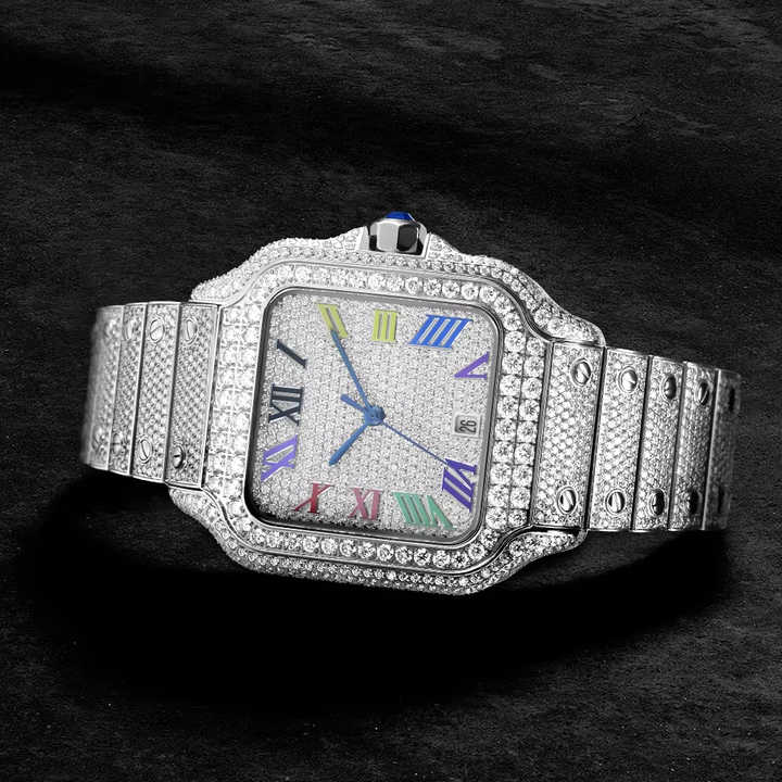 Orologio Meccanico di Lusso in Acciaio Inossidabile con Diamanti Sintetici VVS, Stile Hip Hop, Automatico, Testato con Tester per Diamanti