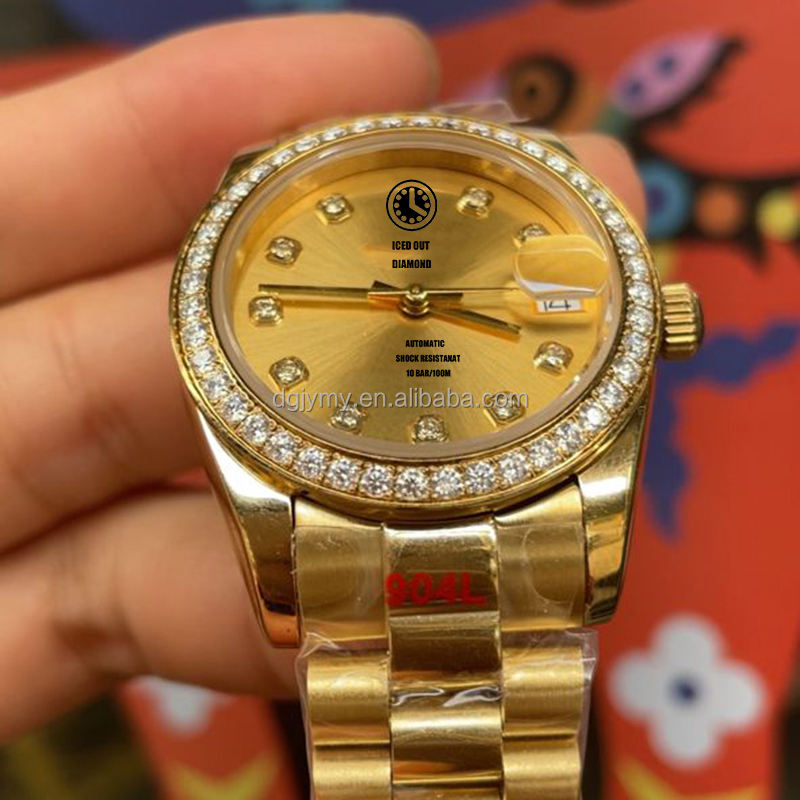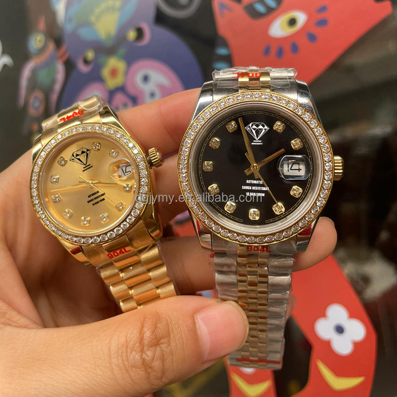 Orologio Automatico Meccanico da Uomo con Diamanti Moissanite, Placcato in Oro 18K, 36 mm, Vetro Zaffiro, Supera il Test del Diamante