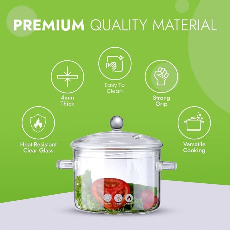 Set di Pentole da Cucina in Vetro Termoresistente per Pasta, Zuppe e Latte, Sano per Pappe, Senza Piombo