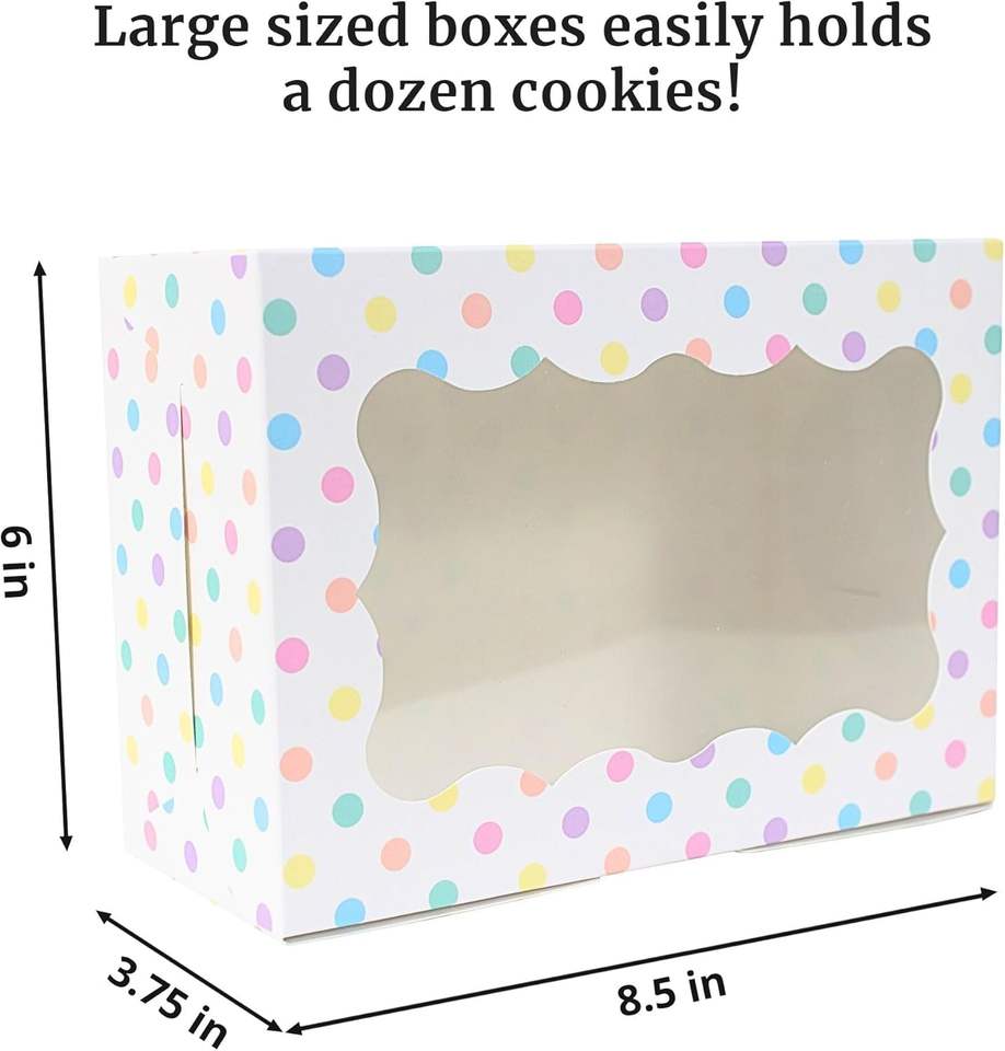 Scatole di biscotti pastello a pois con finestra per compleanni di Pasqua Cupcakes di grandi dimensioni si adatta facilmente a una dozzina di biscotti