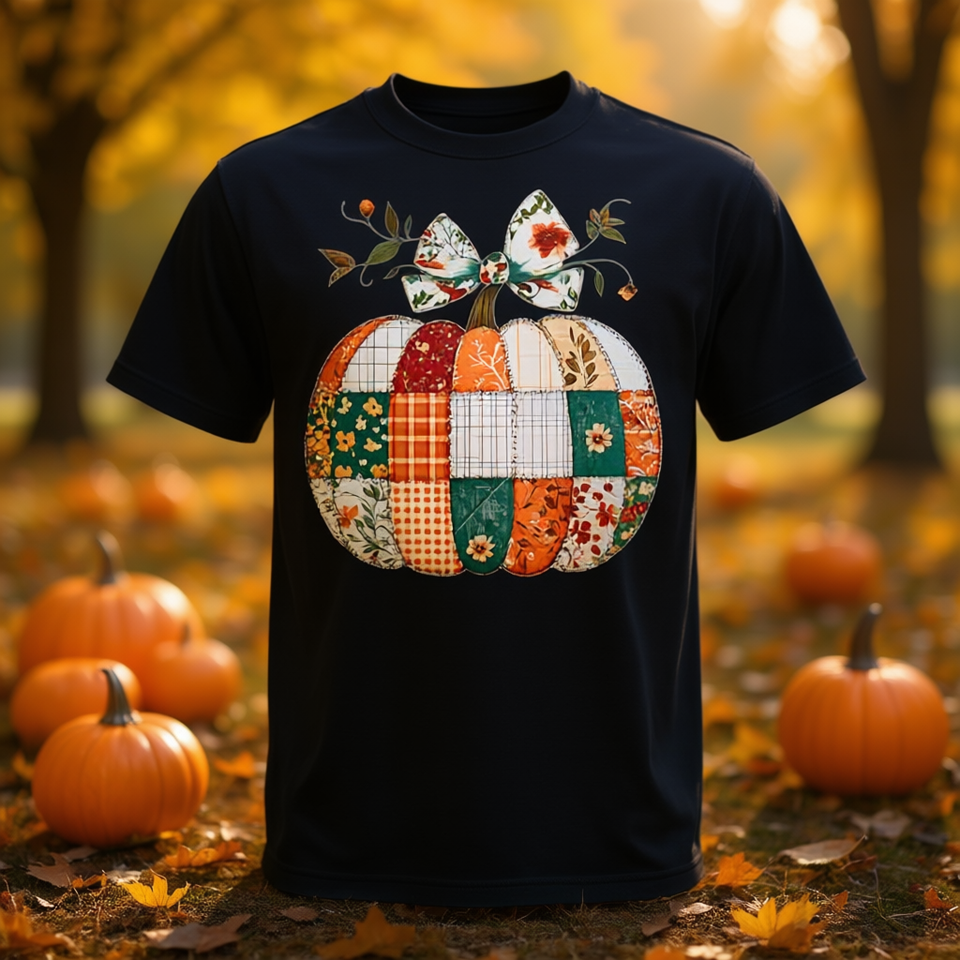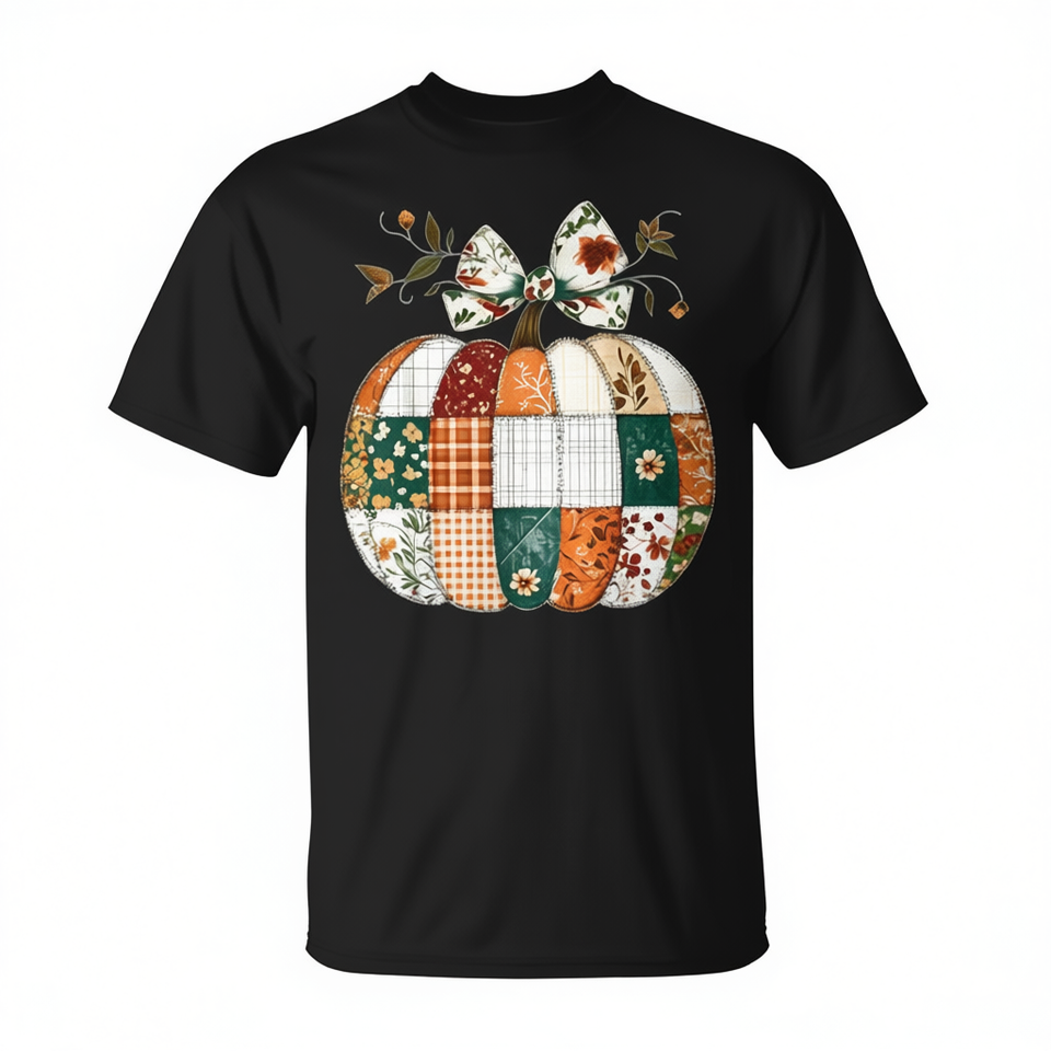 T-Shirt Patchwork con Motivo Floreale e Zucca, Collo Tondo, Manica Corta, Unisex, per Adulti, Autunno, Halloween, Abbigliamento Promozionale con Stampa Digitale