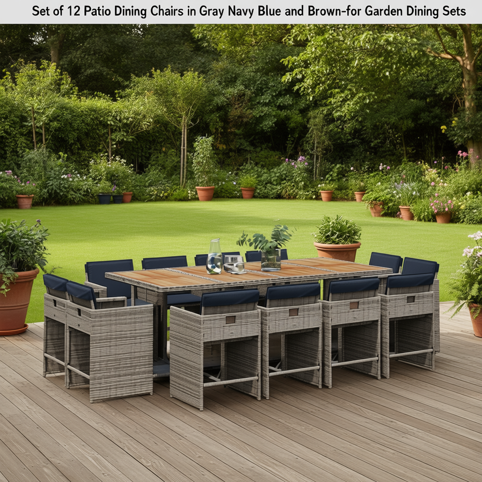Patio Dining Chairs Set Of 12 In Gray Navy Blue And Brown For Garden Outdoor Furniture Contemporary Wicker Rattan Weather