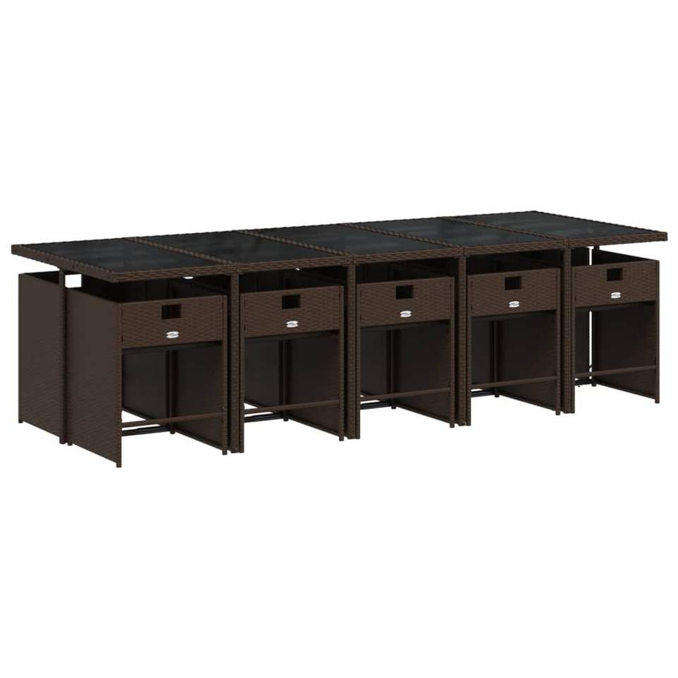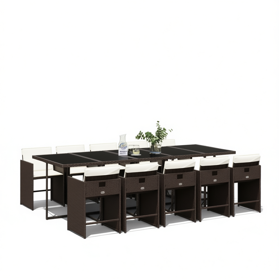 Set da Pranzo da Giardino per 10 Persone in Rattan Marrone, Arredamento da Esterno Contemporaneo Resistente alle Intemperie