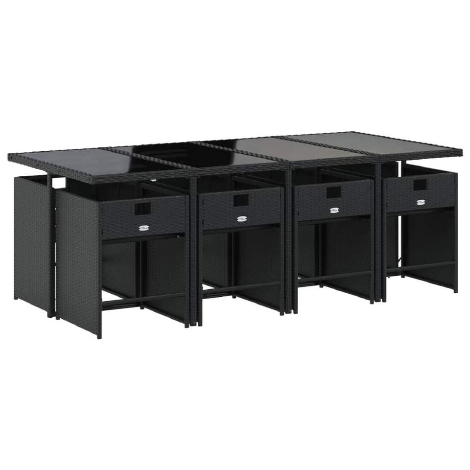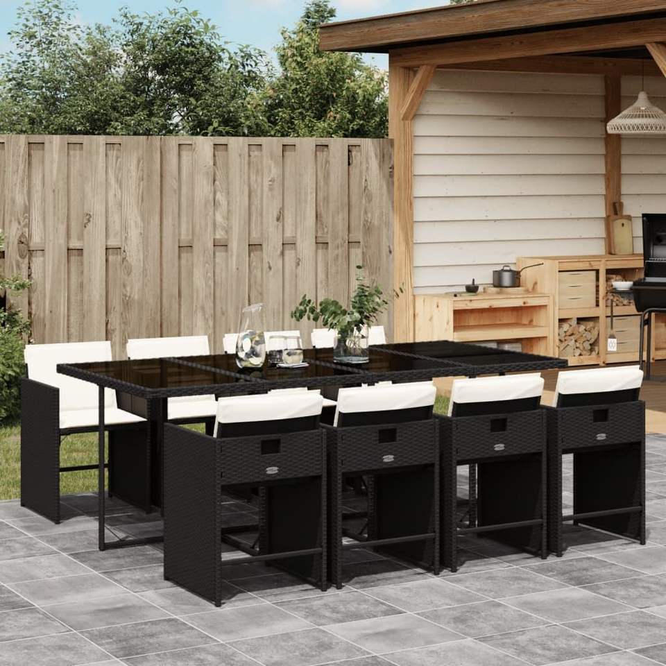 Set da Pranzo da Giardino per 8 Persone in Rattan Nero, Arredamento da Esterno in Stile Contemporaneo Resistente alle Intemperie