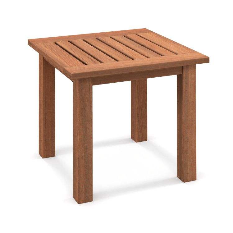 Tavolino Quadrato da Esterno in Legno Massello con Piano a Doghe