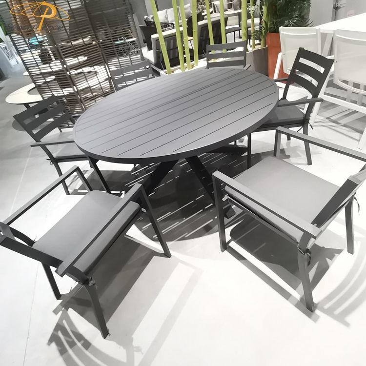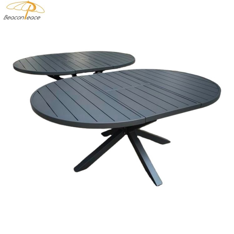 Patio Garden Furniture Set Aluminium Round Dinning Table Extendable Black Outdoor Dining Oval Table with Extension