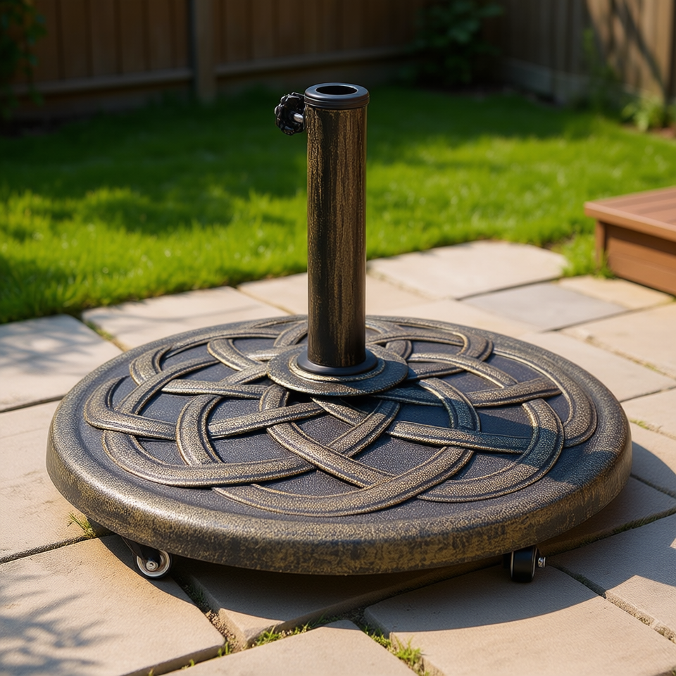 Patio Umbrella Base Round Iron Base With Embossed Design For Outdoor Use