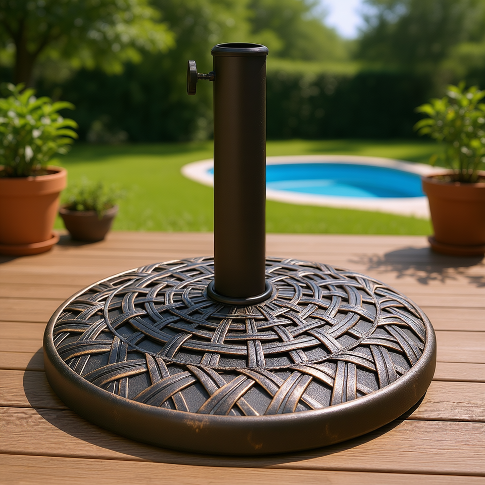 Supporto per Ombrellone da Patio con Base in Cemento da 26 Libbre, Palo da 1,5 Pollici, Colore Bronzo, per Uso Esterno