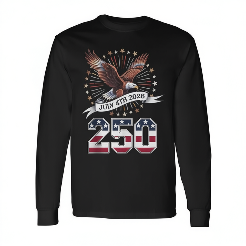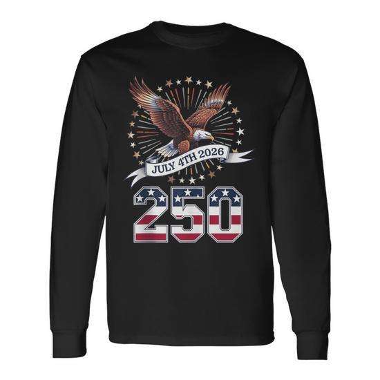 T-shirt patriottica a maniche lunghe per il 250° anniversario del 4 luglio USA 1776 2026