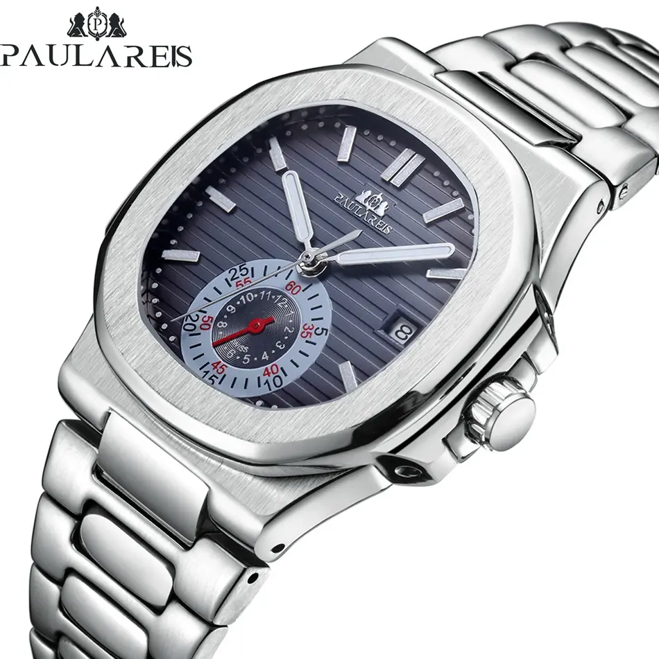 Paulareis Automatic Self Wind Mechanical Luminous Stainless Steel Blue Grey Coffe Black White Dial Dress Luxury Men Watch