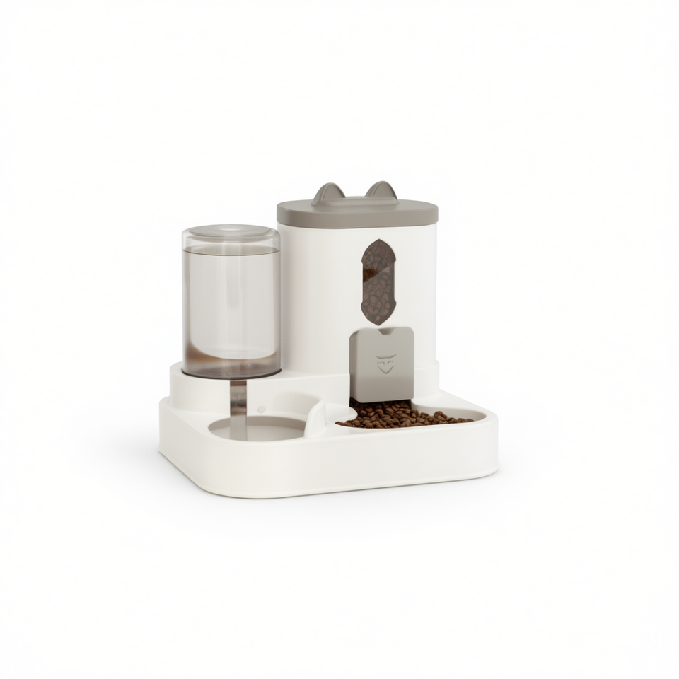 Distributore Automatico di Cibo per Gatti Pawfect, Ciotola Rettangolare in Plastica Grigia con Erogatore d'Acqua per Gatti