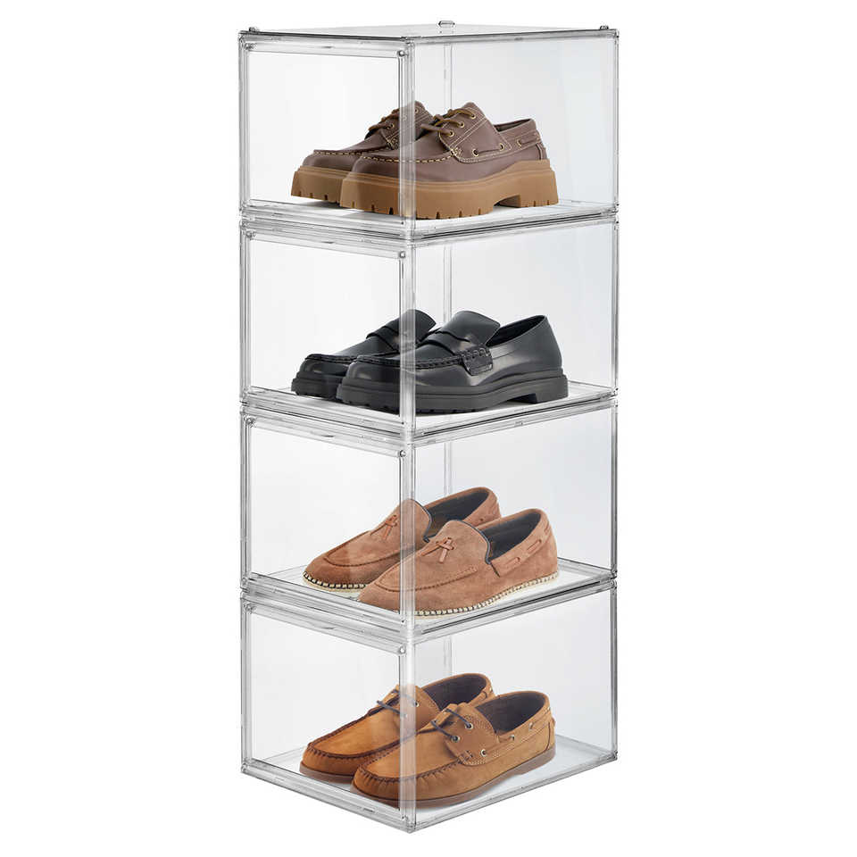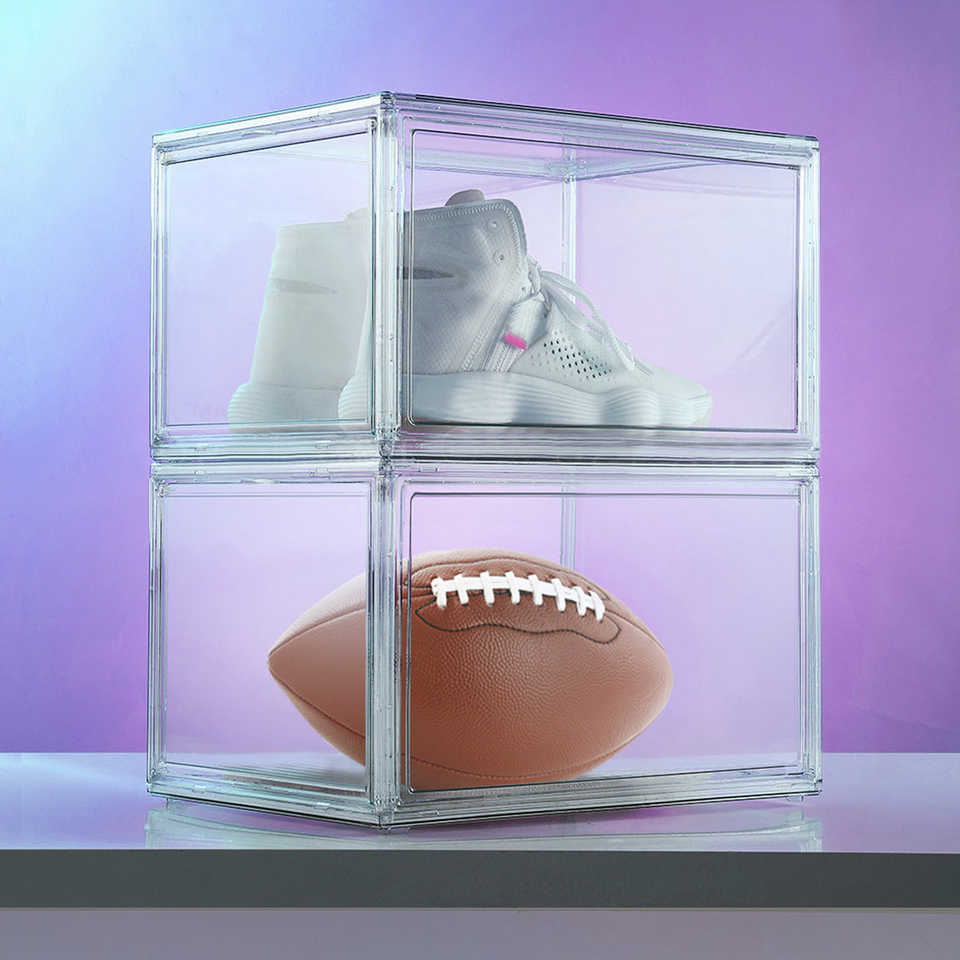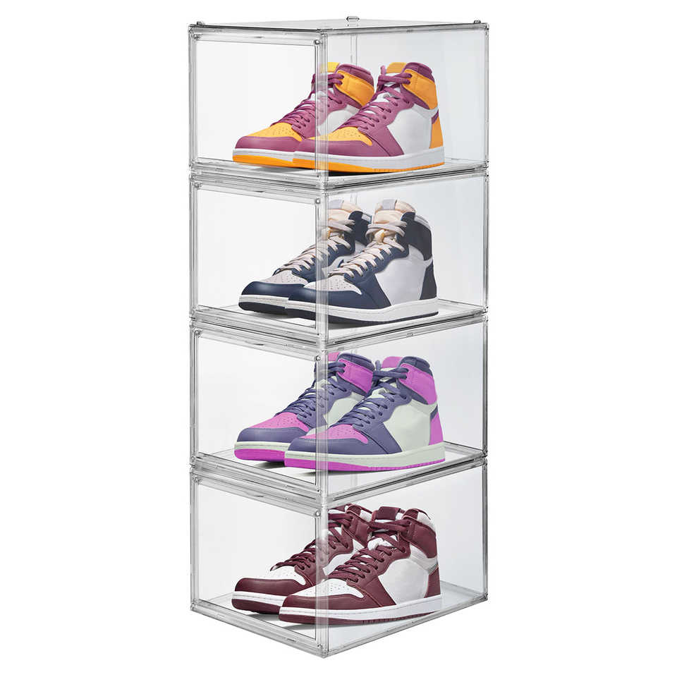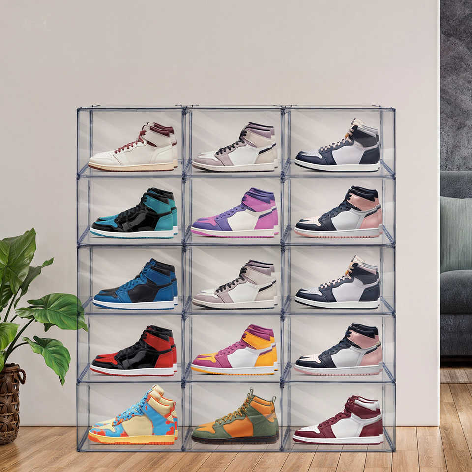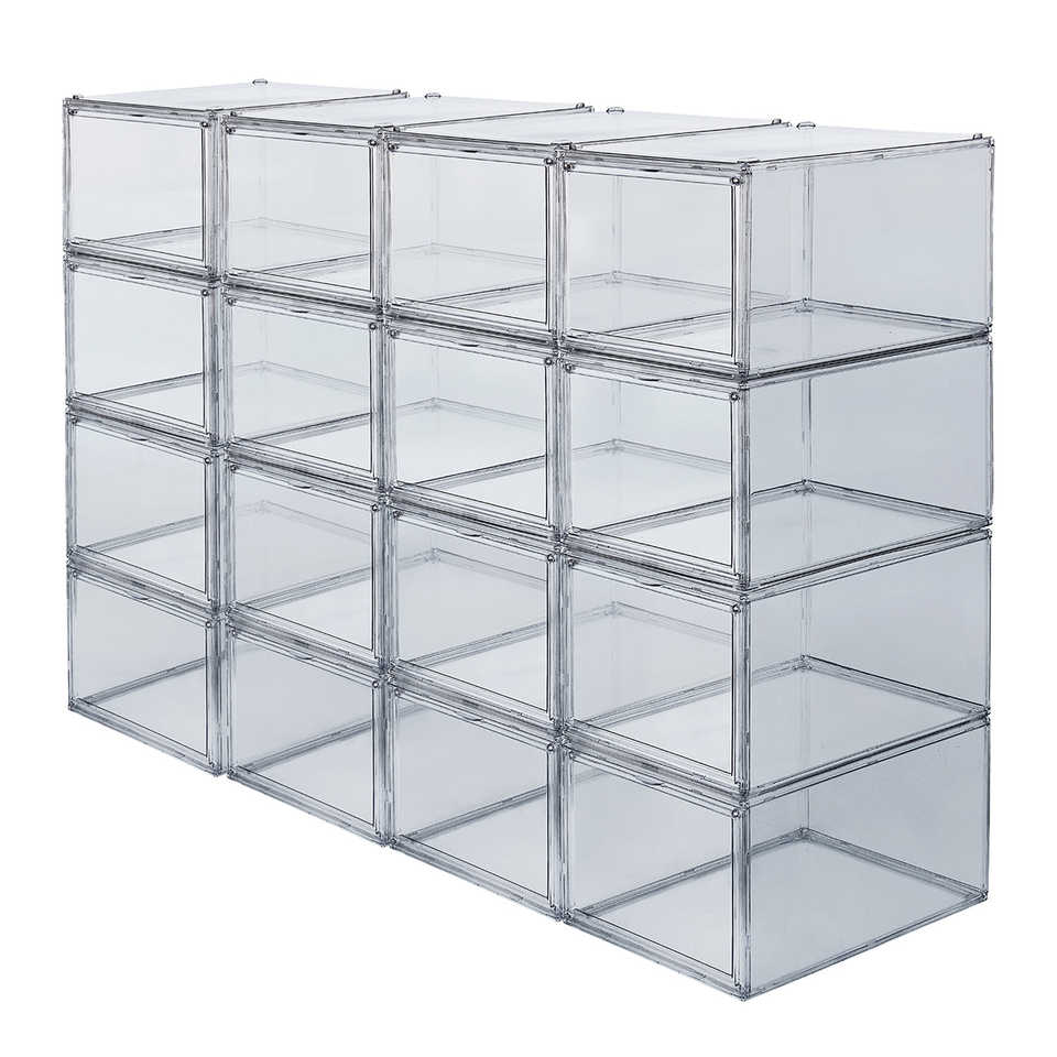 Payton 16-Piece Acrylic AG BOX Double Tiers Foldable Shoe Organizer with Storage Box and PP Shoe Shelf Stackable Shoe Rack