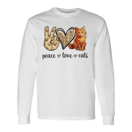 Peace Love Cats Long Sleeve T-Shirt Orange Tabby Cat Design Unisex Crew Neck Digital Printing Adult Promotional