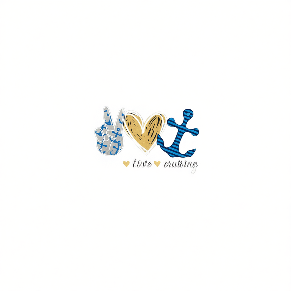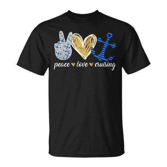 T-shirt Peace Love Cruising a maniche corte, girocollo unisex, design con ancora di nave da crociera per vacanze in mare