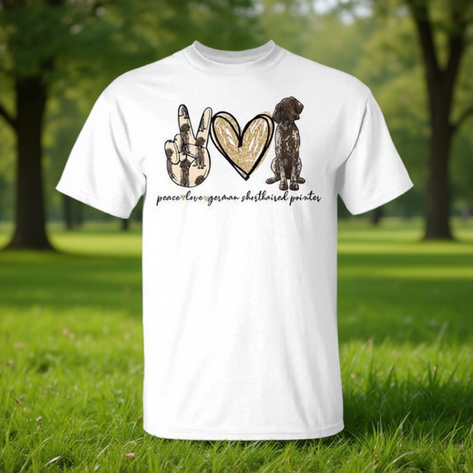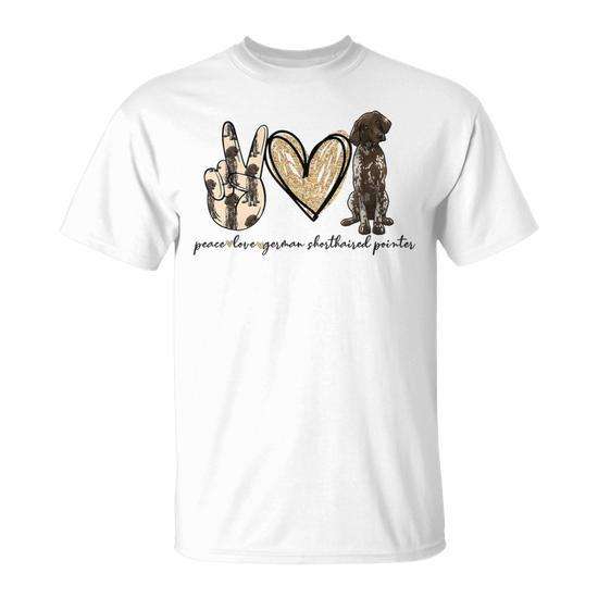 T-shirt per amanti dei cani Peace Love German Shorthaired Pointer, girocollo unisex per adulti, stampa digitale a maniche corte