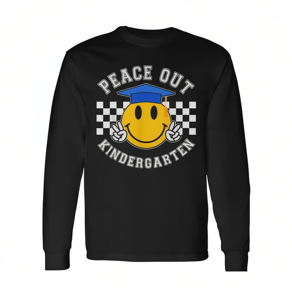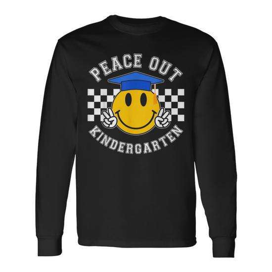 T-shirt a maniche lunghe con faccina sorridente Peace Out Kindergarten, ultimo giorno di scuola