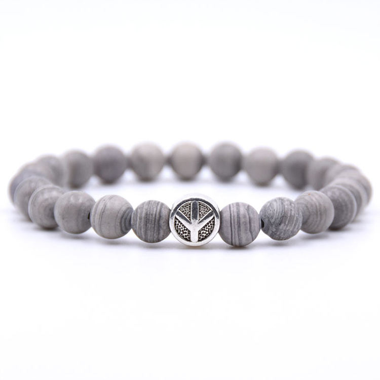 Name:Peace Sign Bracelet Classic Natural Stone Bead Bracelets For Men Women