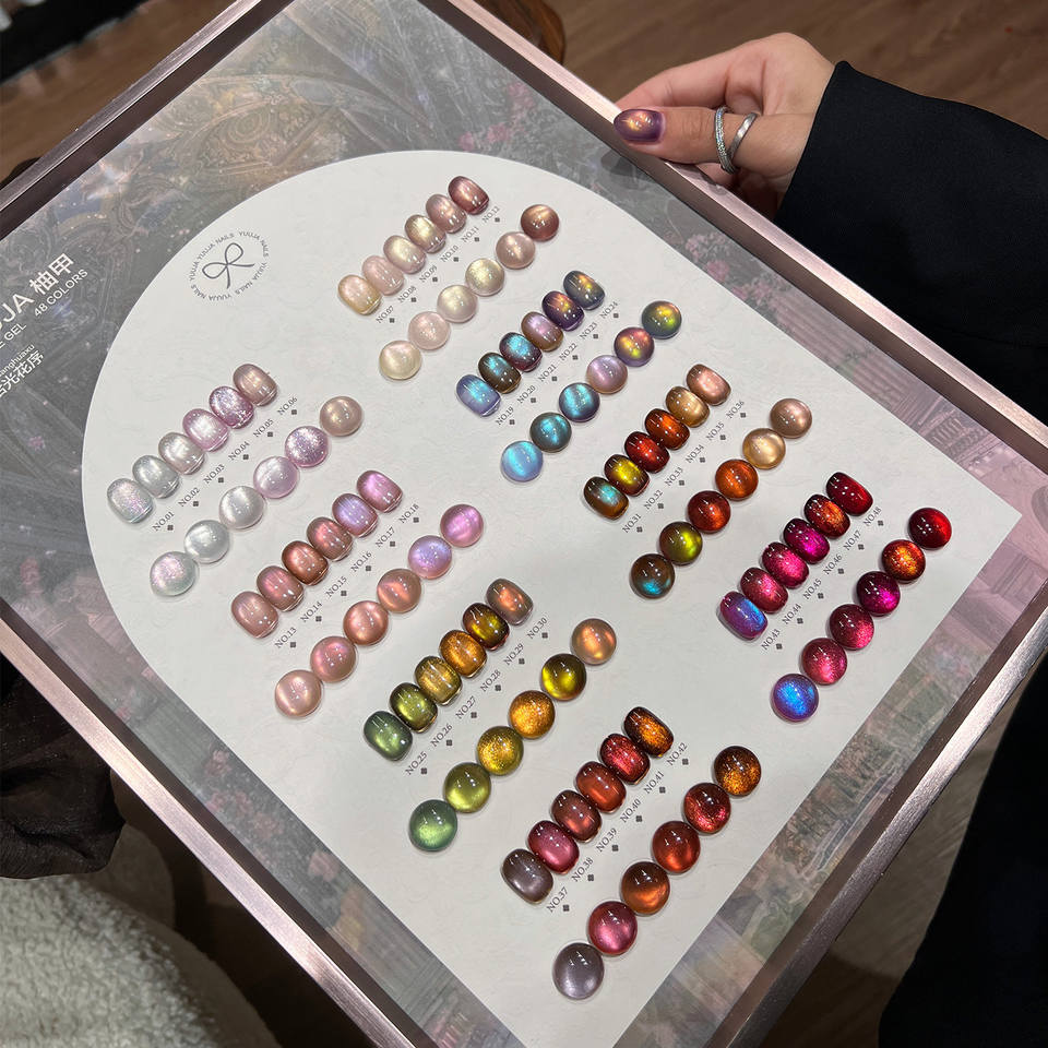 Smalto Gel per Unghie Effetto Occhio di Gatto Rosa Pesca 15ml Impermeabile con Cartella Colori per Nail Art Fai-da-Te