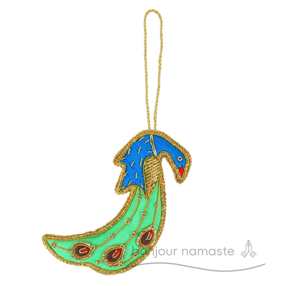 Peacock Bird Christmas Ornament | Luxe Velvet Hand-Embroidered Beadwork for Premium Gift Retail