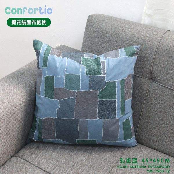 Peacock Blue 45*45 Spliced Suede Cloth Pillow Antelina Estampado Antelina Estampado Seat Cushions & Pillows