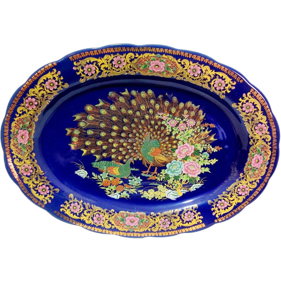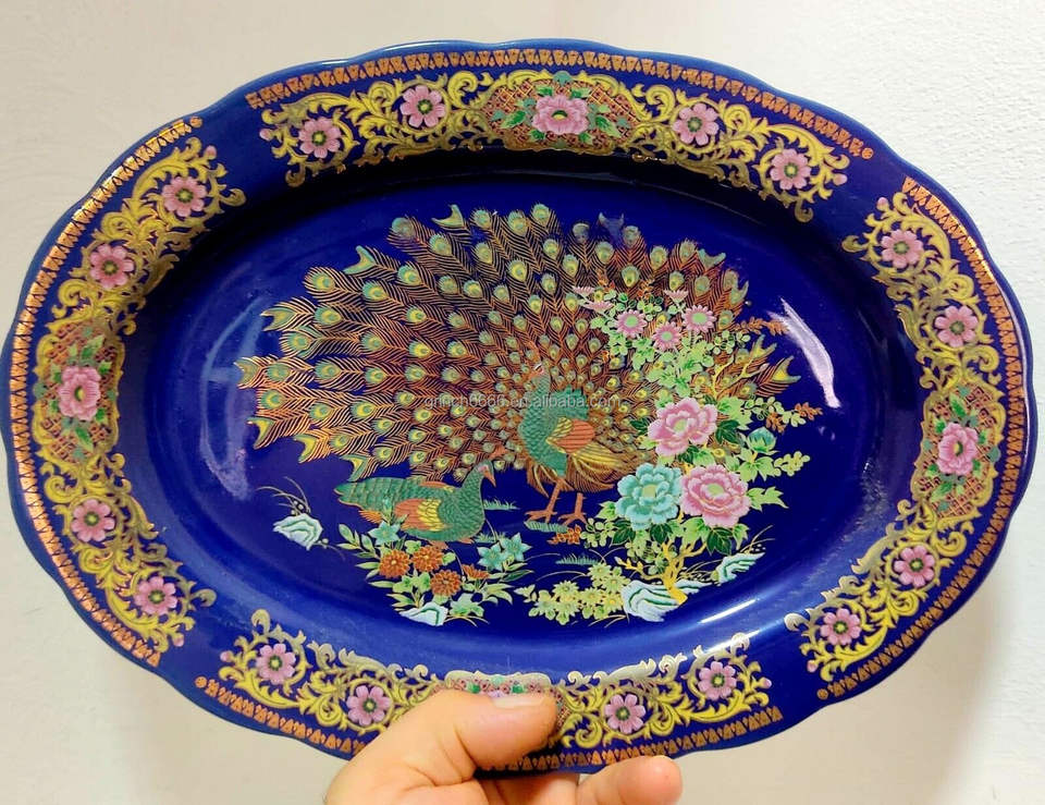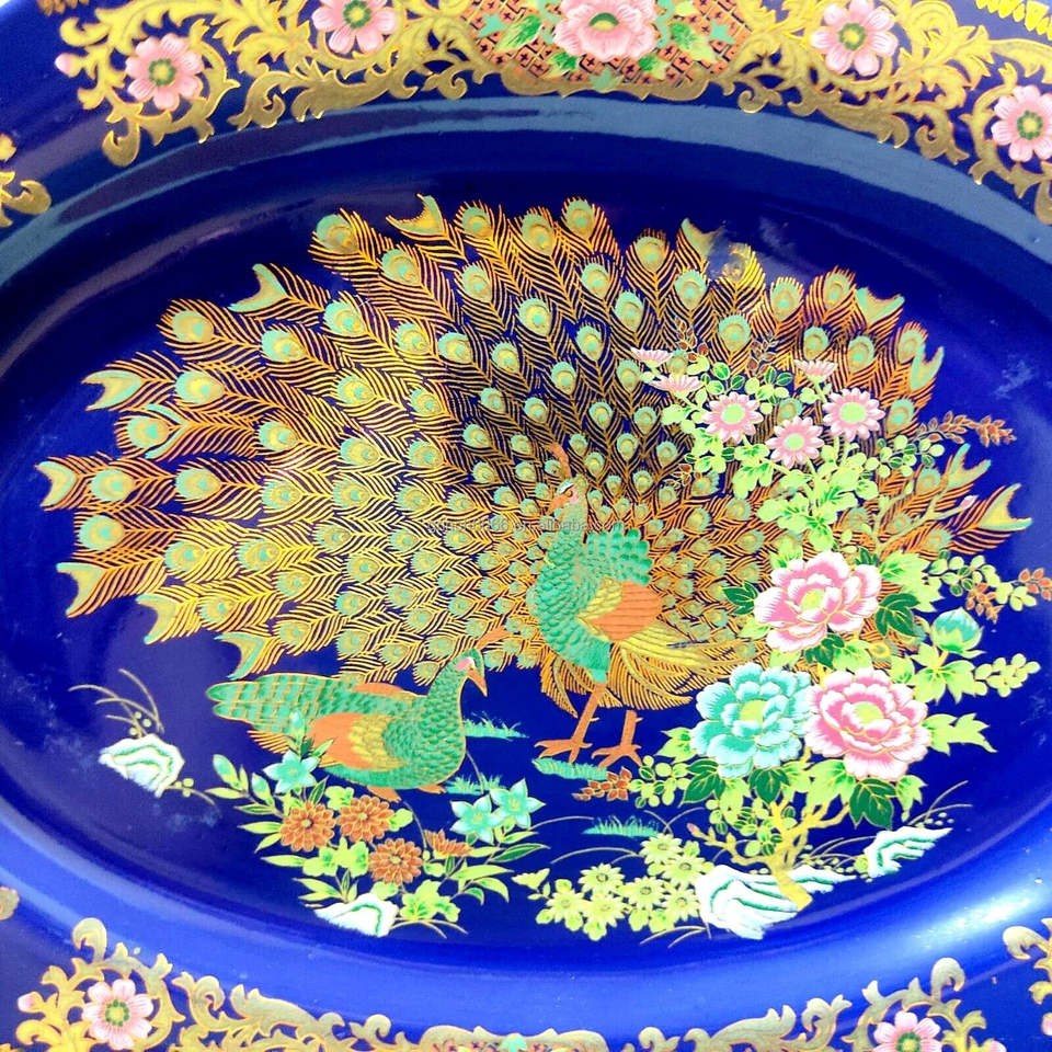Piatto in Porcellana con Design a Pavone, Placcato Oro Marocchino, Regalo Vintage Giapponese, Piatto per Frutta Secca