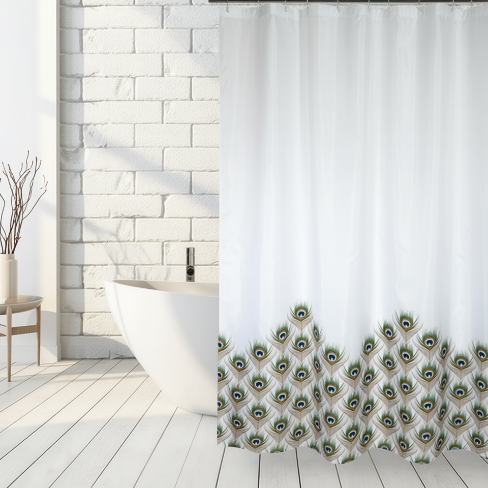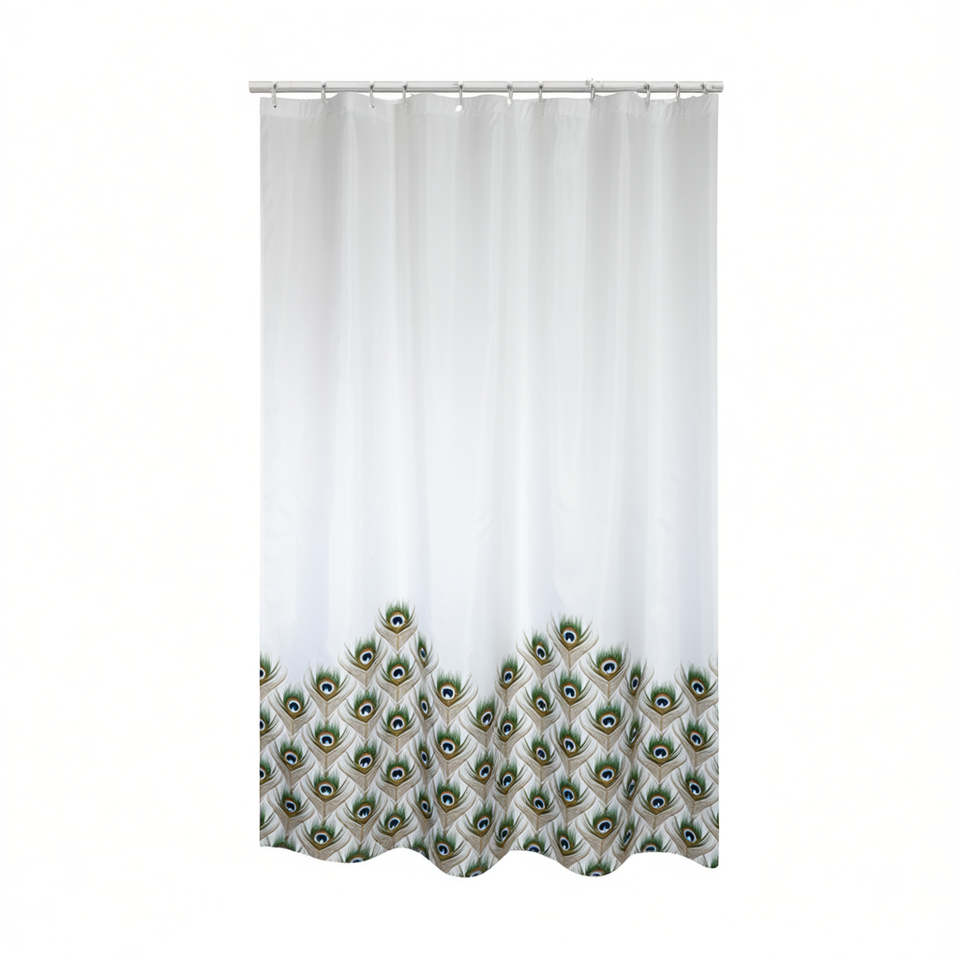Tenda da doccia in tessuto poliestere Peacock 180x200 cm con design a motivo occhiello per l'arredamento del bagno