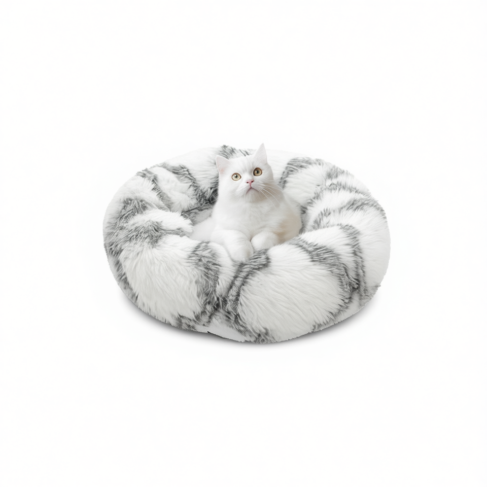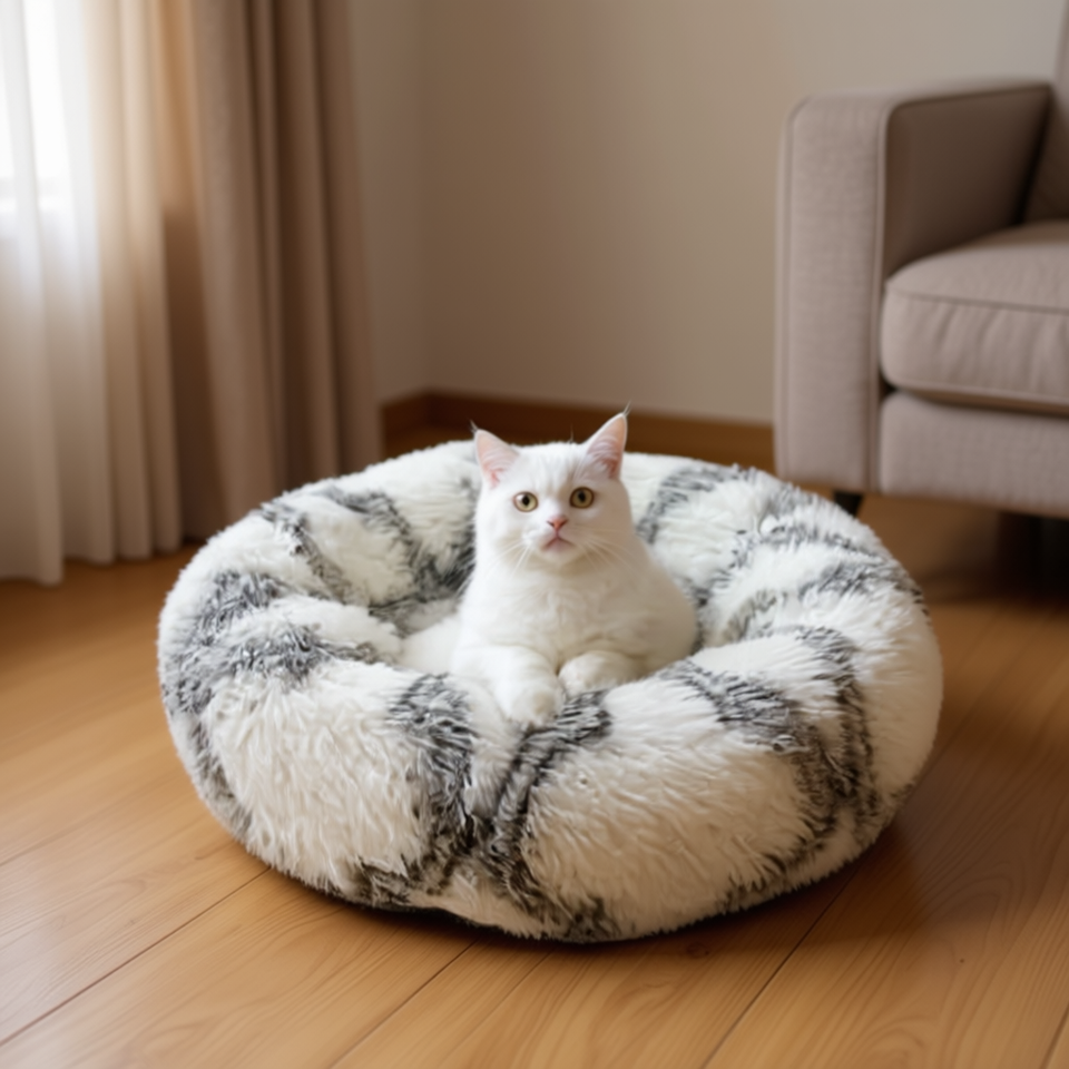 Peacock Velvet Round Nest Three-Piece Set Rice White Pet Beds