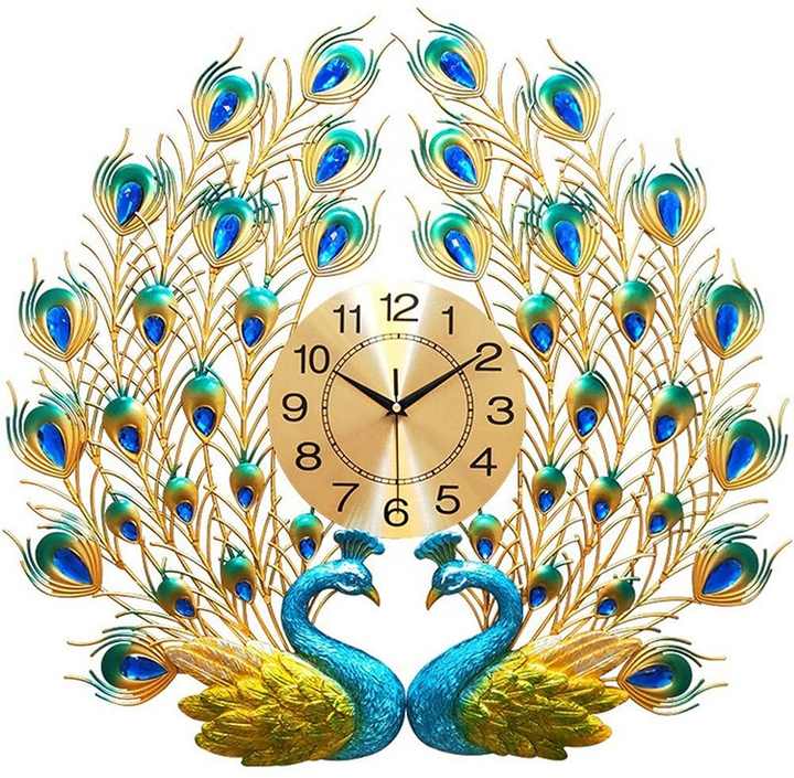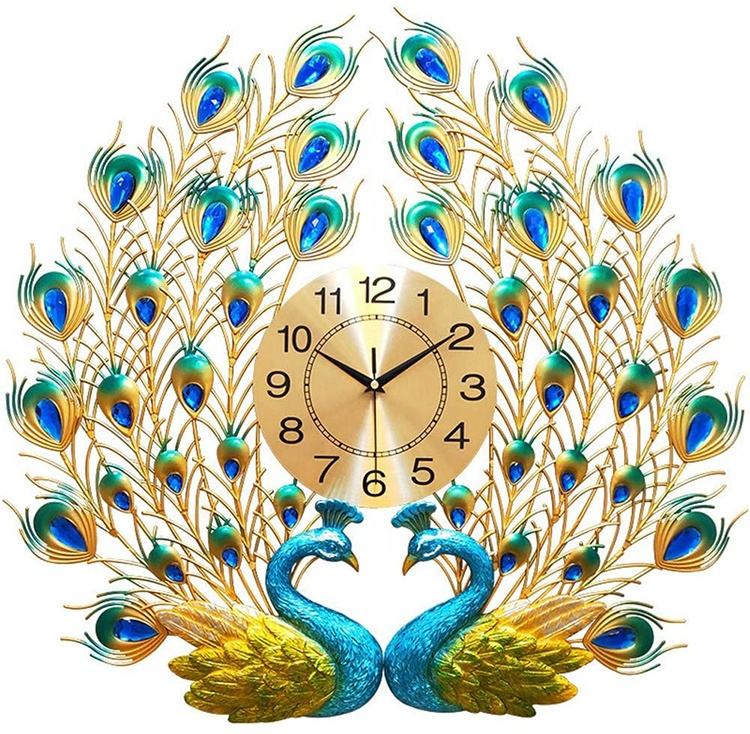 Peacock Wall Clocks Large Decor Home Wall Mount Mute Quartz Clock Metal Modern Art Wall Clock for Living Room Kitchen Corridor