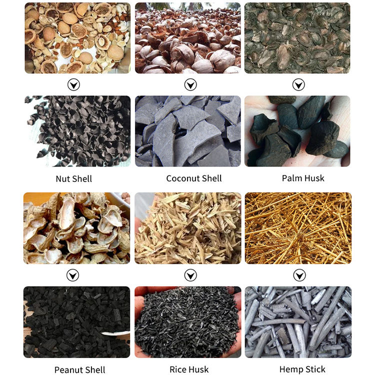 Materie prime applicabili:Bambù, guscio di noce di cocco, tronco, buccia di riso, trucioli di legno, ecc.