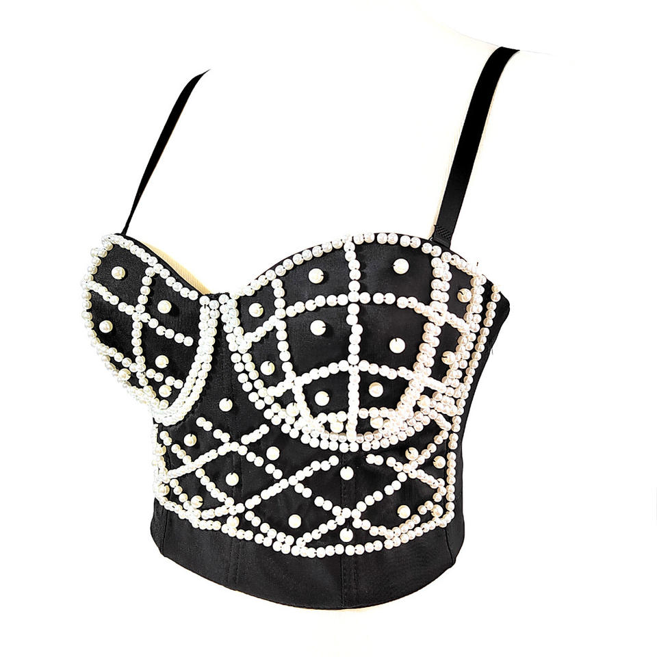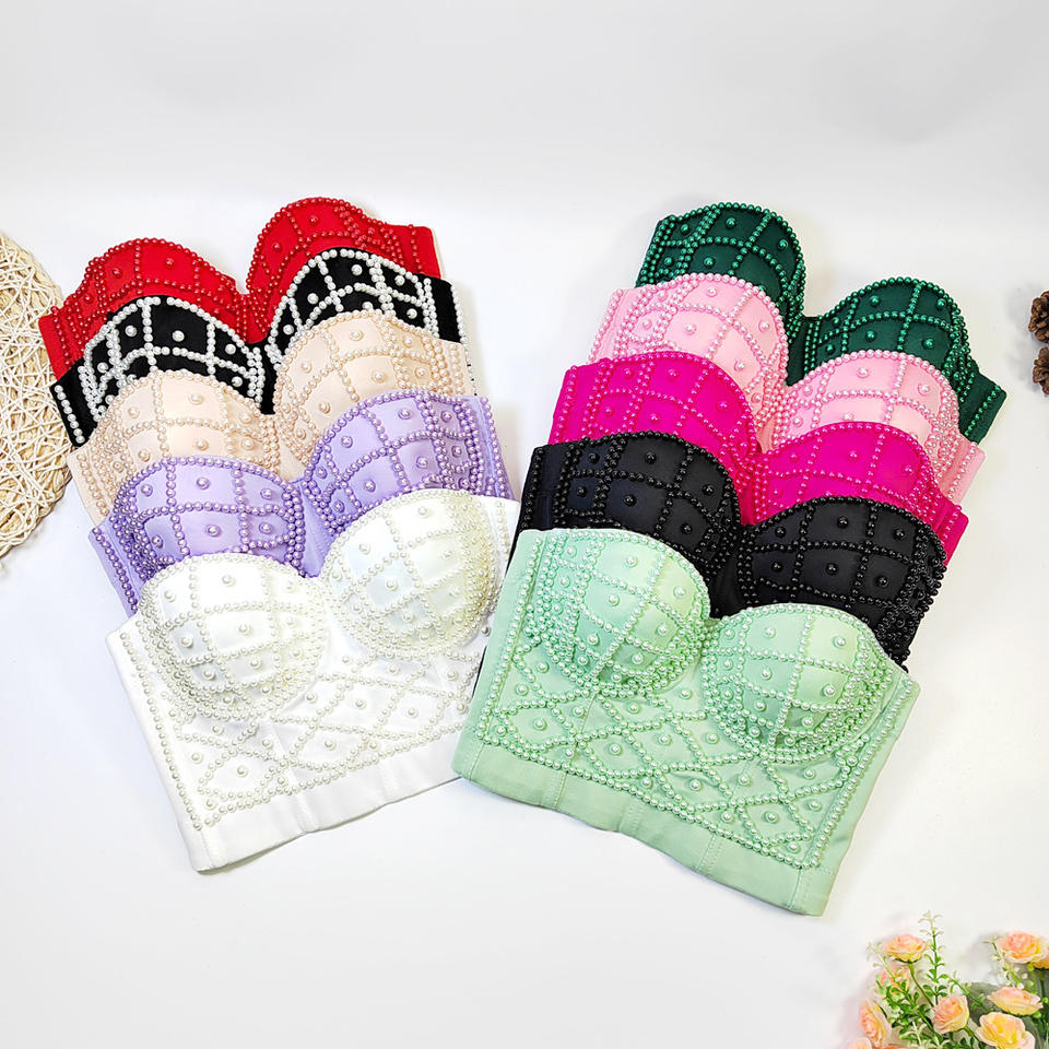 Pearl Camisole Outer Wear Beautiful Back Exposed Navel Sexy Short Tube Tops Sweet Cool Fishbone Bustier Corset Bra Top for Women