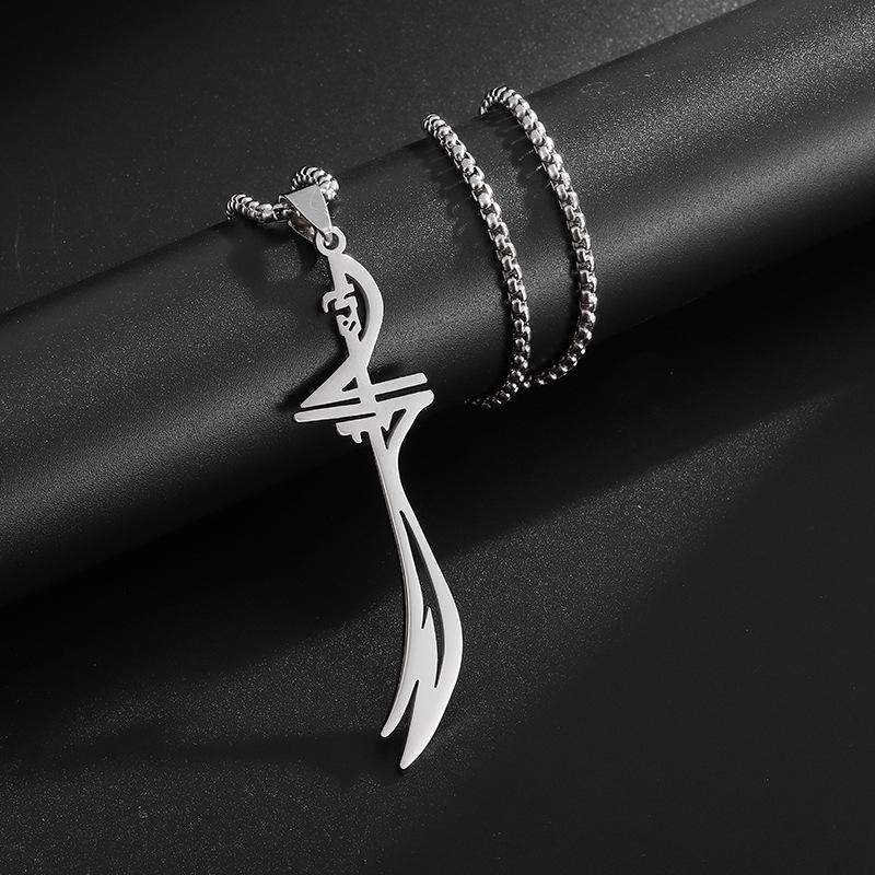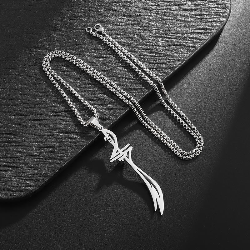 Pearl Necklace Pendant Stainless Steel Islamic Muslim Zulfikar Imam for Ali Sword Diamond Snake Chain for Men's Gift Pendant