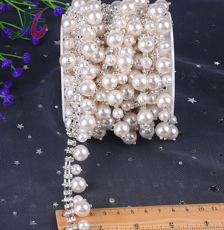 Catena di perle di strass per decorazione/vetro ceco perla bianca su catena di coppa placcata in argento