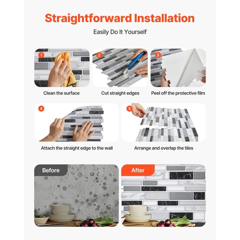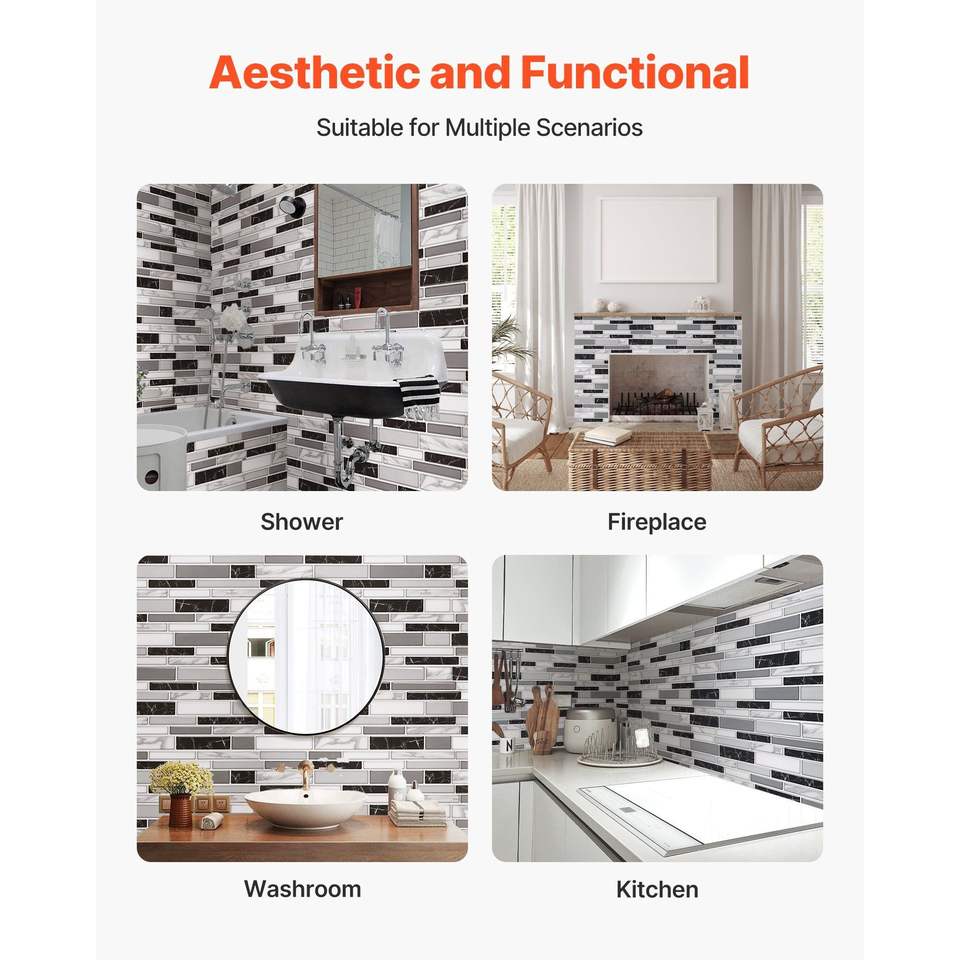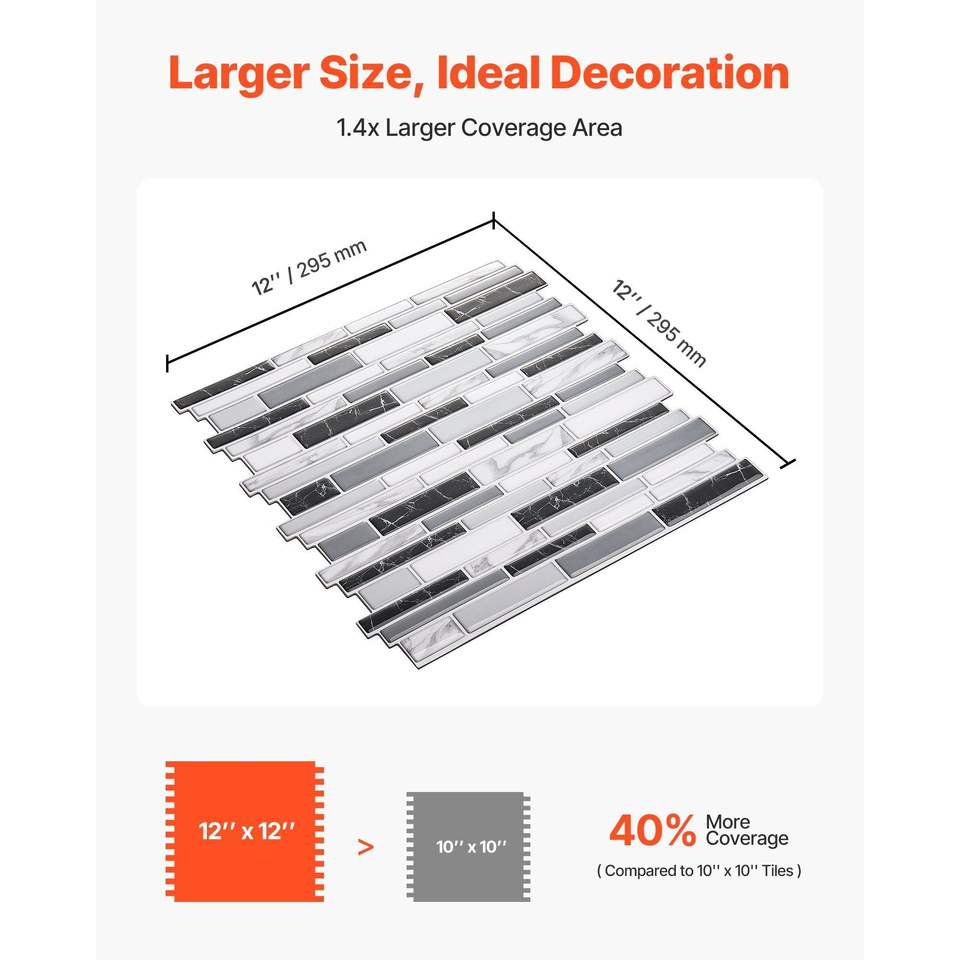 Piastrelle Adesive da Parete Peel-and-Stick, 10 Fogli, 305 x 305 x 2,0 mm, per Rivestimento Parete Stile Subway, Formato 12 X