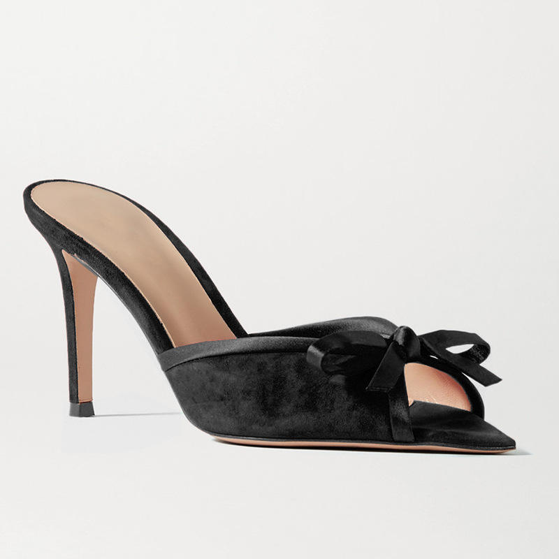 Peep Toe Mules Women Sandals New High Heels Shoes Hot Sale Summer PU OEM Suede Floral Girls Summer Pumps Fashion Trend Slip-on