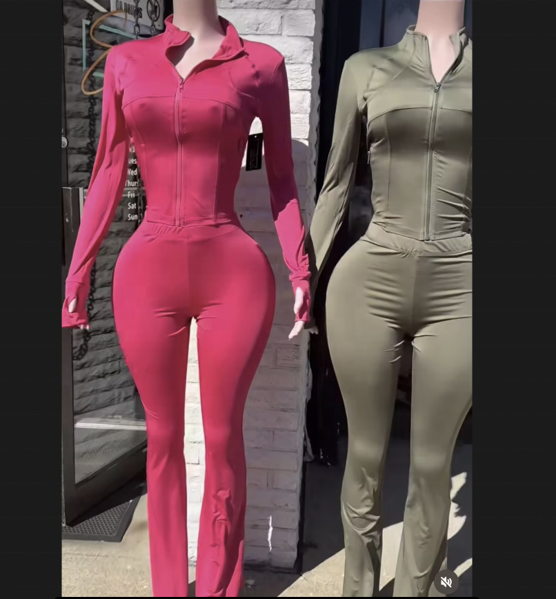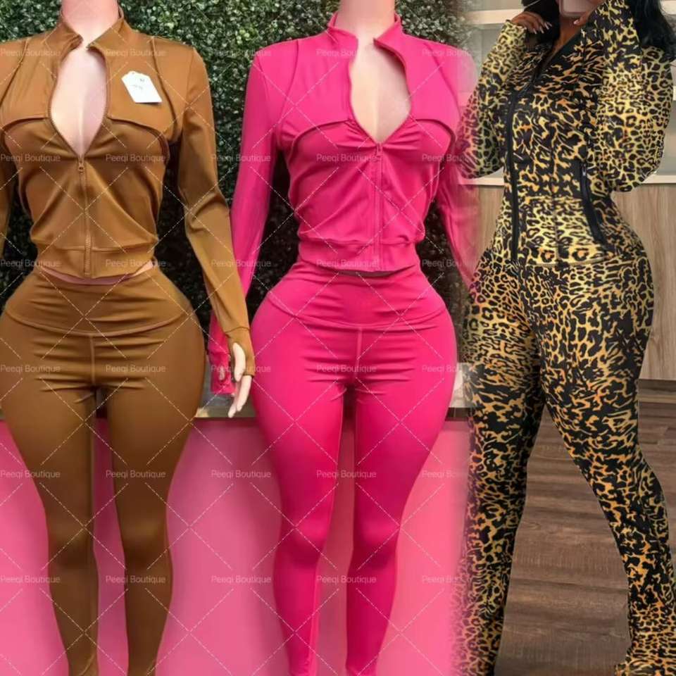 Peeqi HR24057 Sexy Sportswear Two Piece Pants Set Long Sleeve Zippers Top Flared Pants Suit Slimming Workout Tracksuit for Women
