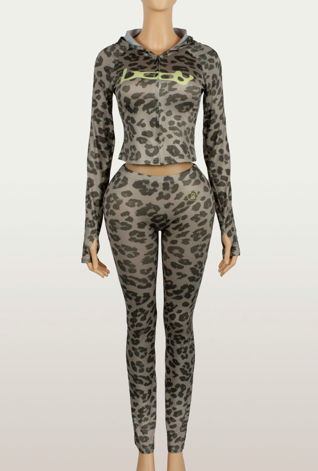 Peeqi K25L1054 Autumn 2025 New Sexy Outfit Two Piece Pants Set Letter Print Hooded Long Sleeve Cardigan Top and Trousers Set