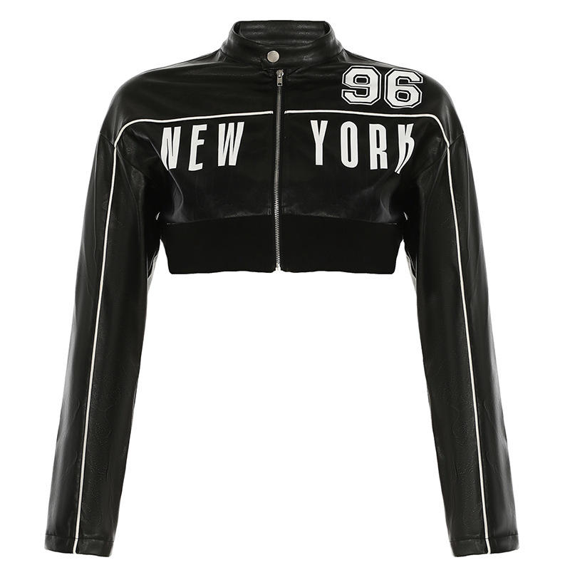 Completo Donna 2 Pezzi Peeqi: Minigonna Plissettata in Ecopelle e Giacca con Zip e Stampa Lettering in Ecopelle
