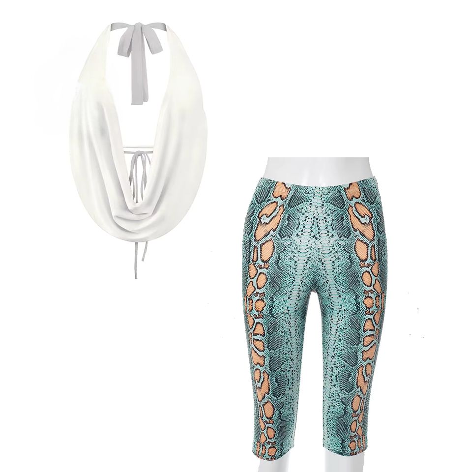 Peeqi Trendy Women's Shorts Set Backless Shirt Top and Leopard Shorts 2 Piece Set Sexy Club Two Piece Set for Women Clothing