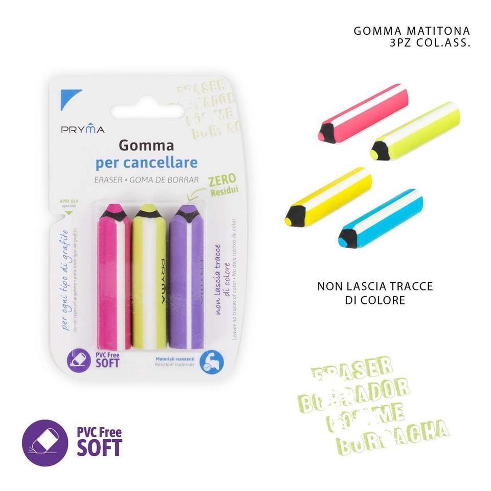 Pencil-shaped eraser 1.5x6.5x1.5cm 3pcs