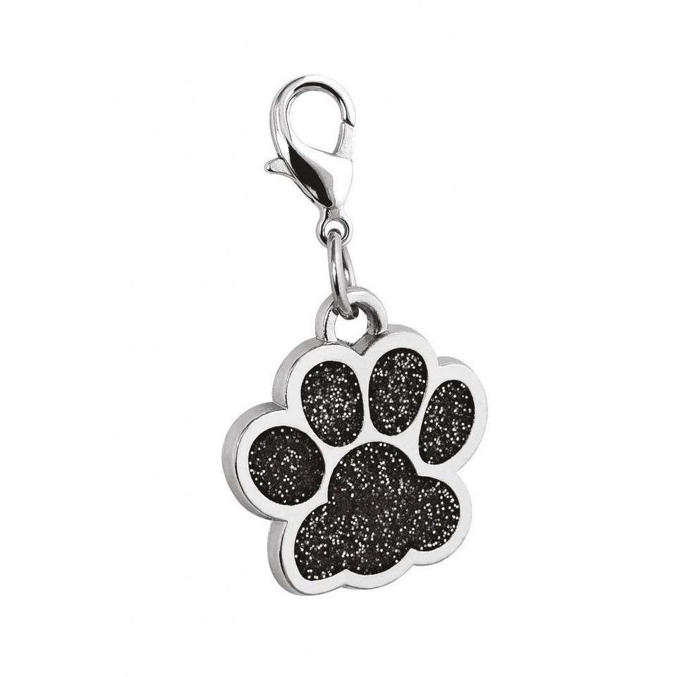 Pendant Paw Glitter Black D25 Mm Charm For Pets Jewelry Accessory