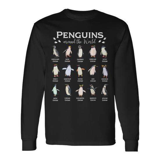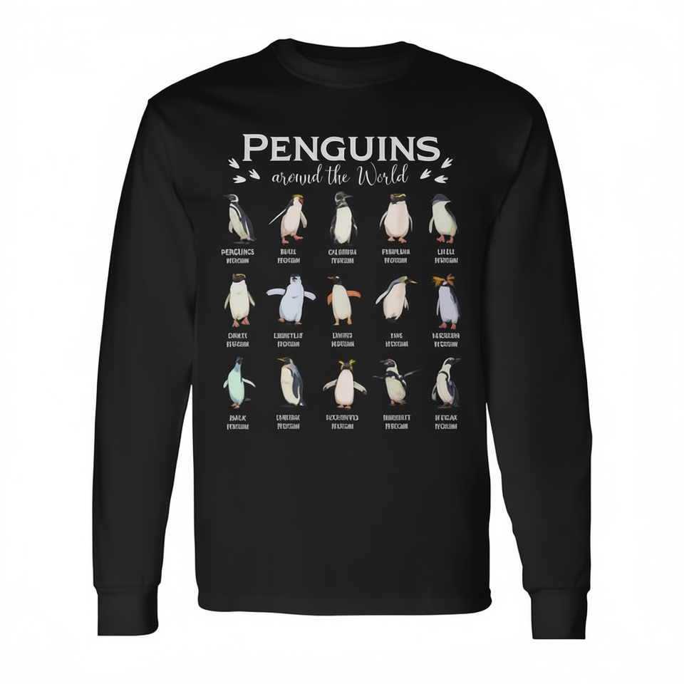 T-shirt a maniche lunghe unisex per adulti con stampa digitale Penguin Around the World