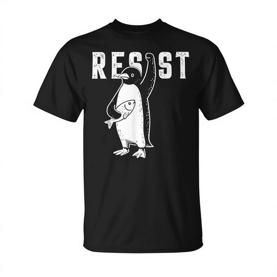 T-Shirt con Design Resistente al Tema 'Protesta dei Pinguini Contro le Tariffe' per Uso Promozionale