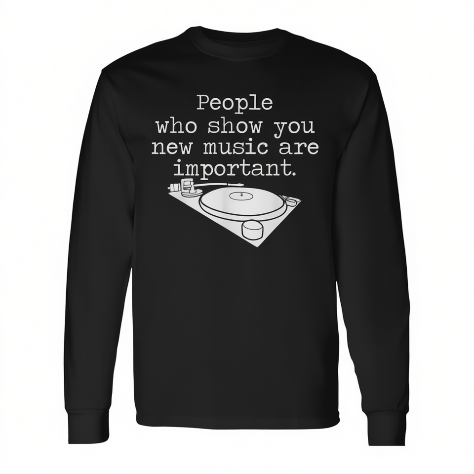 Le persone che ti mostrano nuova musica sono importanti. T-shirt a maniche lunghe con design di dischi in vinile.