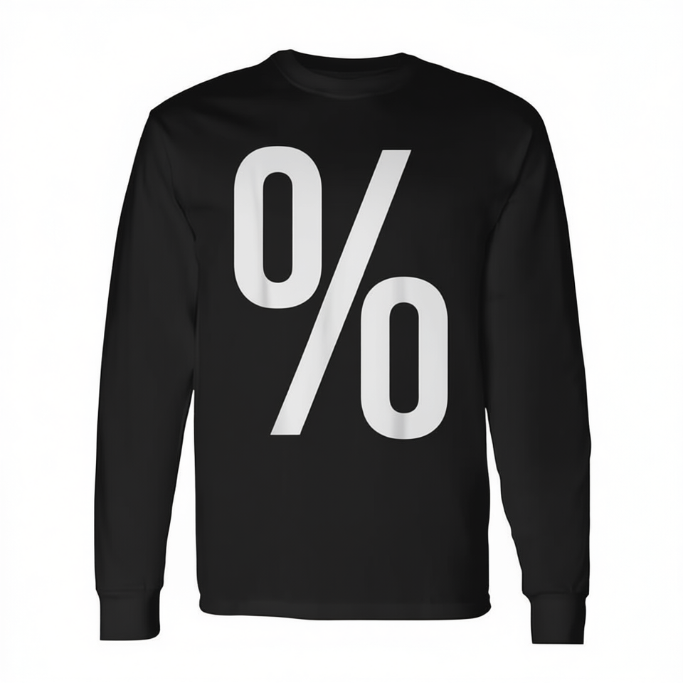 T-shirt a maniche lunghe con stampa Percent Sign, nera e bianca, abbigliamento casual unisex