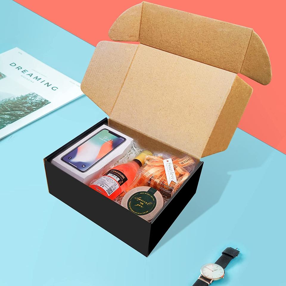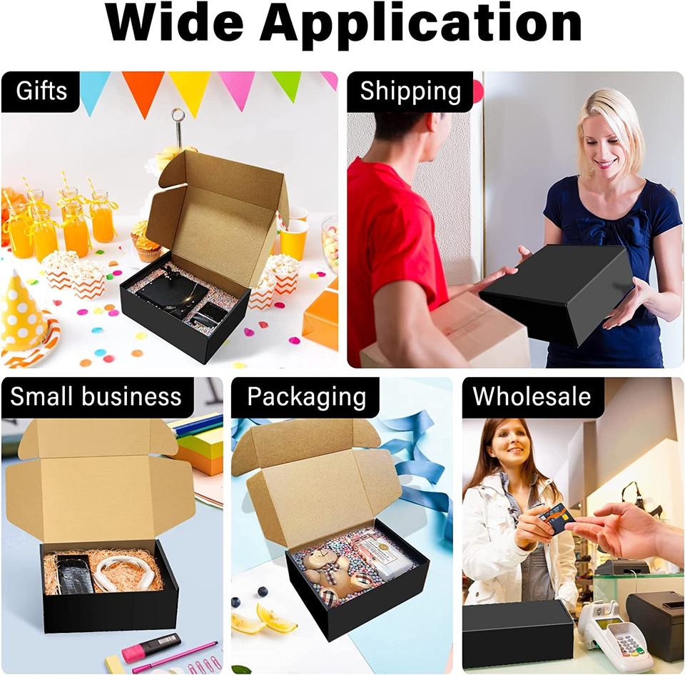 Scatole di cartone per imballaggio di buste ondulate di dimensioni perfette scatole di scarpe di spedizione nere di alta qualità leggere 8x6x3 pollici