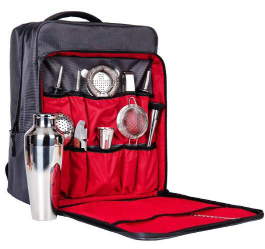Set di Strumenti Perfetti per Bar Domestico con Zaino Porta Attrezzi Grande per 6 Bottiglie, Set Shaker per Cocktail Impermeabile per Bar