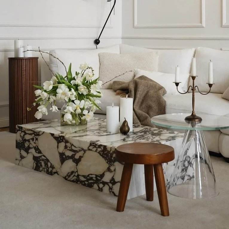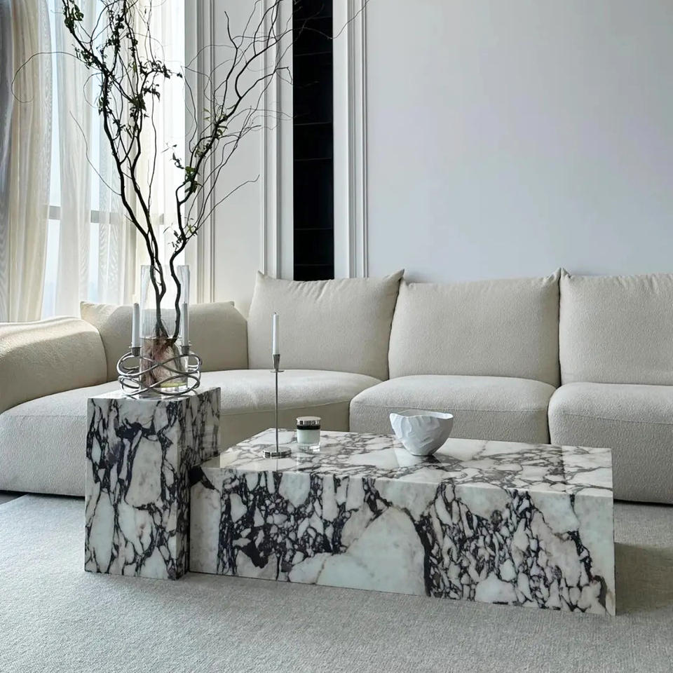 Tavolino da Salotto di Lusso in Marmo Calcutta Viola, Nuovo Design, Arredamento in Pietra di Alta Gamma, Vendita all'Ingrosso