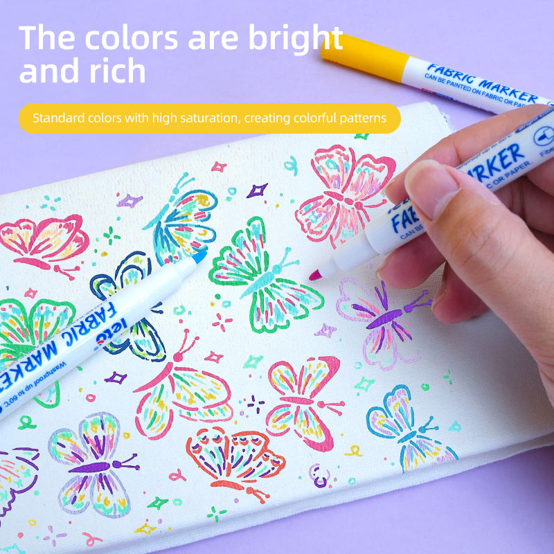 Pennarelli per Tessuti Permanenti di Alta Qualità, Penna Marcatore per Tessuti Non Tossica, Pennarello Artistico per Tessuti a Doppia Punta Lavabile